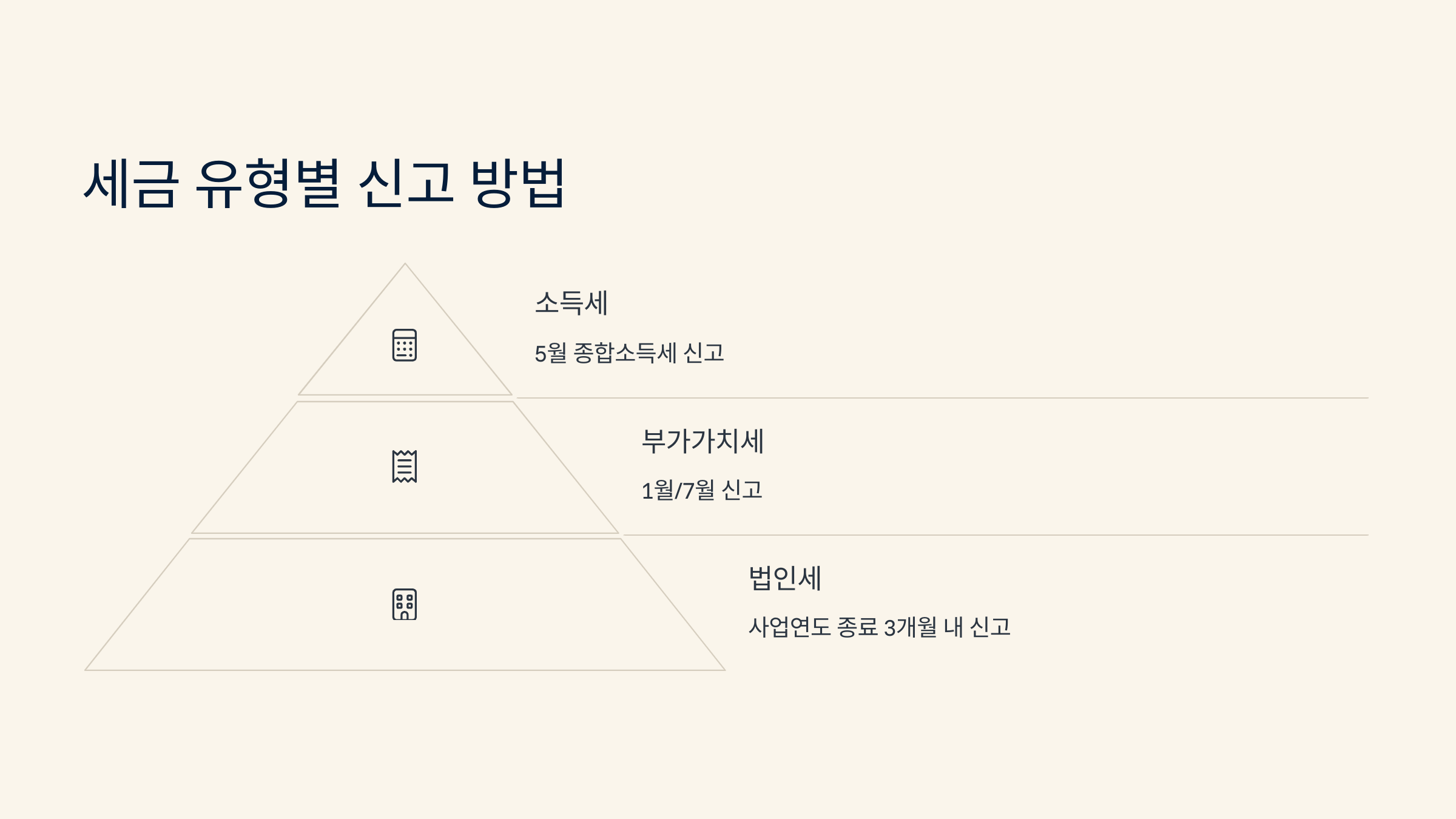 - 소득세 신고:- 매년 5월에 종합소득세 신고를 해야 하며, 사업소득 외 다른 소득(이자, 배당, 근로, 연금, 기타)이 있는 경우 합산하여 신고해야 합니다.- 사업 관련 비용은 필요경비로 인정받을 수 있으므로, 영수증, 거래명세서 등을 잘 보관해야 합니다.- 소득세 신고 시에는 소득 누락 및 허위 필요경비 계상에 주의해야 합니다.